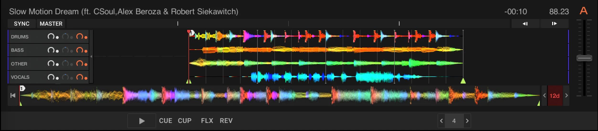 - Generate Stems for Track A in NUO-STEMS 4 in "Native Traktor Pro 4" mode
