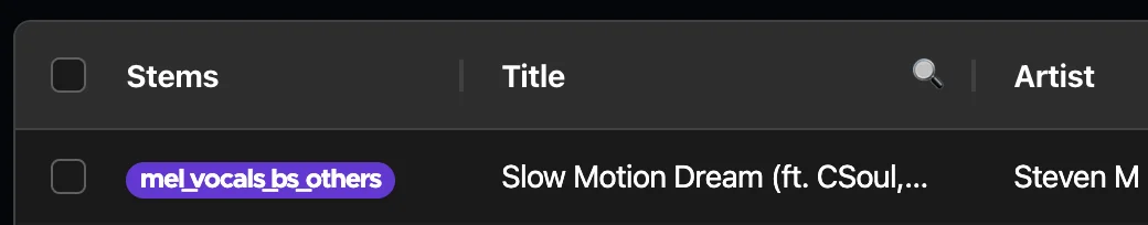 Once the STEMS are generated and linked, you will see the algorithm next to the original track.